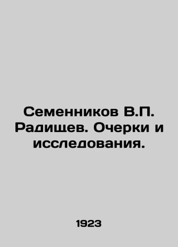 Semennikov V. Radishchev. Essays and Research. In Russian /Semennikov V. Radishchev. Ocherki i issledovaniya. M.-Petrograd. Gosidat 1923. We have thousands of titles and often several copies of each title may be available. Please feel free to contact us for a detailed description of the copies available. SKUalbe43d4ad46ed80843.