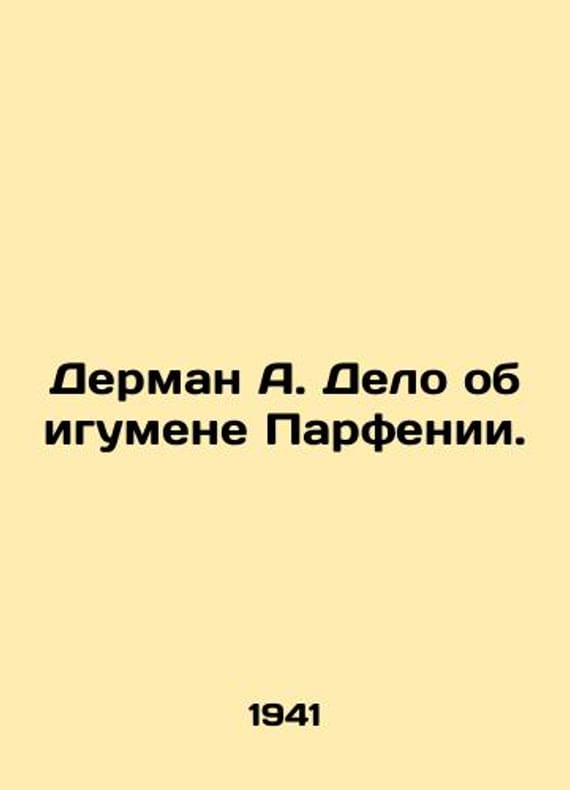 Derman A. The Case of Abbot Parthenia. In Russian (ask us if in doubt)/Derman A. Delo ob igumene Parfenii. M 1941. 380s. We have thousands of titles and often several copies of each title may be available. Please feel free to contact us for a detailed description of the copies available. SKUalbe45622279fc09721