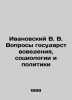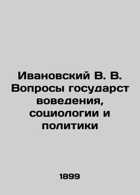 Ivanovsky V. V. Issues of State Studies Sociology and Politics In Russian (ask us if in doubt)/Ivanovskiy V. V. Voprosy gosudarstvovedeniya sotsiologii i politikiKazan type. Imp. University of Kazan 1899 398 and 2. In 1878 he graduated from the Faculty of Law of Kazan University and left the university. After defendIn g his masters thesis: Experience In the Study of the Activities of Regional Self-Government Bodies In Russia (1882) he began lecturIn g on police law. SKUalbe4a6703cc358889b.