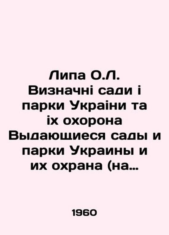 Lime trees, trees, and parks of Ukraine and their protection (in Ukrainian). In Russian /Lipa O.L. Viznachni sadi i parki Ukraini ta ikh okhorona Vydayushchiesya sady i parki Ukrainy i ikh okhrana (na ukrainskom yazyke). Kyiv Vidavnitsvo Kiivsky University, 1960, 176 p. We have thousands of titles and often several copies of each title may be available. Please feel free to contact us for a detailed description of the copies available. SKUalbe4b73b5929d82de4.