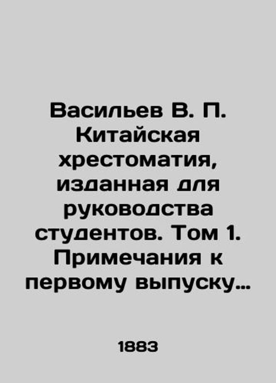 Vasiliev V. P. Chinese Literature published for students guidance. Volume 1. Notes to the first issue of Chinese Literature. In Russian (ask us if in doubt)/Vasilev V. P. Kitayskaya khrestomatiya izdannaya dlya rukovodstva studentov. Tom 1. Primechaniya k pervomu vypusku kitayskoy khrestomatii.St. Petersburg M. Alisov and A. Grigorieva. 1883. 162 p.. SKUalbe4b9d1af9c2ec012.