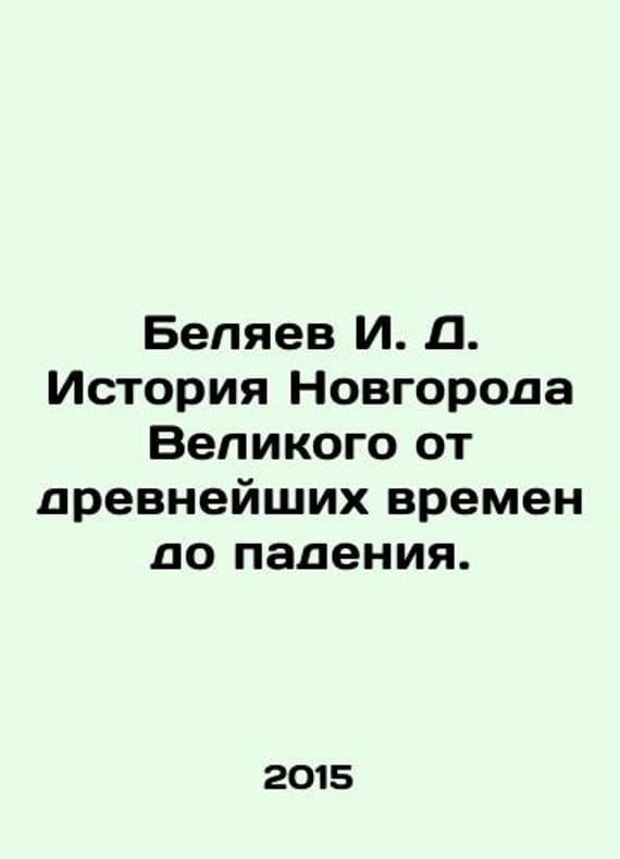 I. D. Belyaev History of Novgorod the Great from ancient times to fall. In Russian /Belyaev I. D. Istoriya Novgoroda Velikogo ot drevneyshikh vremen do padeniya. 5 copy Moscow Publishing House, V. Sekachev, 2015, 640s. We have thousands of titles and often several copies of each title may be available. Please feel free to contact us for a detailed description of the copies available. SKUalbe4cc68861326139f.