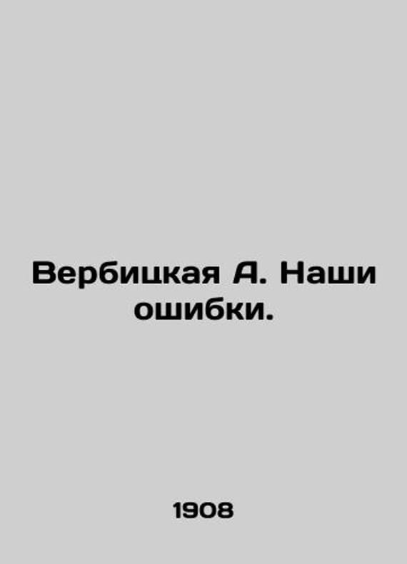 Verbitskaya A. Our mistakes. In Russian /Verbitskaya A. Nashi oshibki. A Tale in 2 Parts. Third Edition. M. Kouchnerev 1908. 164s. We have thousands of titles and often several copies of each title may be available. Please feel free to contact us for a detailed description of the copies available. SKUalbe528377523e2104e.