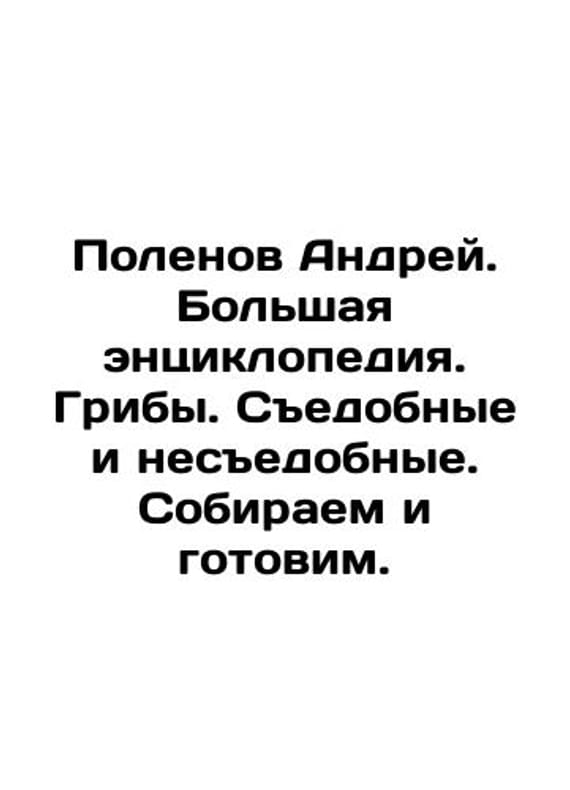 Andrey Polenov. Great encyclopedia. Mushrooms. Edible and inedible. We collect and cook. In Russian /Polenov Andrey. Bolshaya entsiklopediya. Griby. Sedobnye i nesedobnye. Sobiraem i gotovim. M ACT 2022 192 pp. We have thousands of titles and often several copies of each title may be available. Please feel free to contact us for a detailed description of the copies available. SKUalbe5b4882762e454a1.