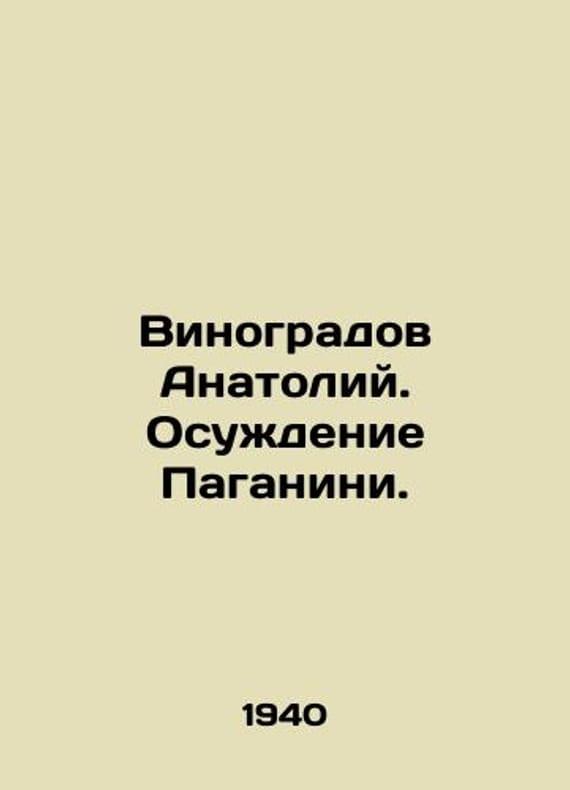 Anatoly Vinogradov. Paganinis conviction. In Russian /Vinogradov Anatoliy. Osuzhdenie Paganini. To the 100th Anniversary of the Death of Nicolo Paganini 1840-1940. Roman.Izv.4. The Year 1940. We have thousands of titles and often several copies of each title may be available. Please feel free to contact us for a detailed description of the copies available. SKUalbe5c9adc9cb33c5ee.