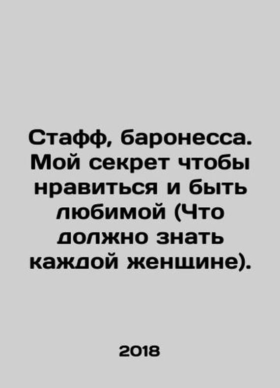 Staff, Baroness. My secret to being liked and loved (What every woman should know). In Russian /Staff, baronessa. Moy sekret chtoby nravitsya i byt lyubimoy (Chto dolzhno znat kazhdoy zhenshchine). Moscow Publishing House V. Sekachev 2018. 488p. We have thousands of titles and often several copies of each title may be available. Please feel free to contact us for a detailed description of the copies available. SKUalbe5e25e8b01b72996.