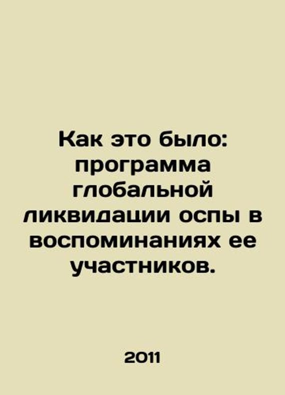 As It Was: A Global Smallpox Eradication Program in the Memories of Its Participants. In Russian /Kak eto bylo: programma globalnoy likvidatsii ospy v vospominaniyakh ee uchastnikov. Novosibirsk CERIS 2011. 276 p. We have thousands of titles and often several copies of each title may be available. Please feel free to contact us for a detailed description of the copies available. SKUalbe6ab34c8e4050d9b.