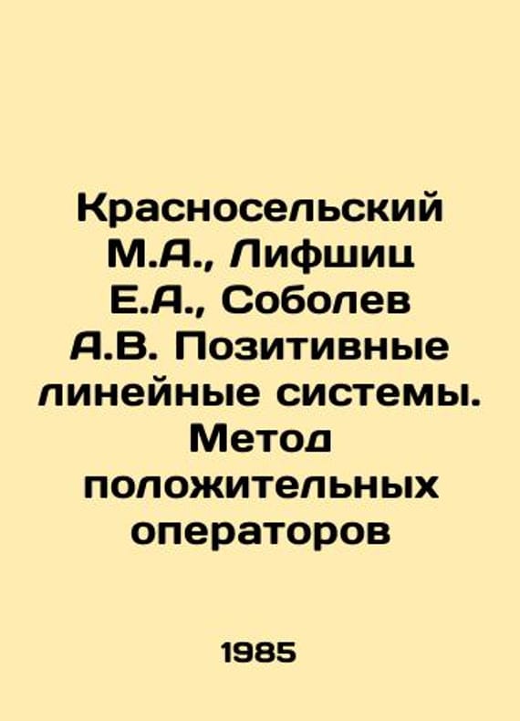 Krasnoselsky M.A., Lifshitz E.A., Sobolev A.V. Positive linear systems. The method of positive operators In Russian /Krasnoselskiy M.A., Lifshits E.A., Sobolev A.V. Pozitivnye lineynye sistemy. Metod polozhitelnykh operatorov Series: Theory and Methods of Systems Analysis. Moscow Science, 1985. We have thousands of titles and often several copies of each title may be available. Please feel free to contact us for a detailed description of the copies available. SKUalbe6edf631bd7136a5.