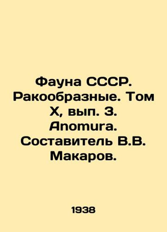 Fauna of the USSR. Crustacean. Volume X, Volume 3. Anomura. Compiled by V.V. Makarov. In Russian /Fauna SSSR. Rakoobraznye. Tom X, vyp. 3. Anomura. Sostavitel V.V. Makarov. Zoological Institute of ANUSSR. New series. # 16. Moscow-Leningrad Academy of Sciences of the USSR. 1938. X, 324, 16 p. We have thousands of titles and often several copies of each title may be available. Please feel free to contact us for a detailed description of the copies available. SKUalbe7327cff255e8101.