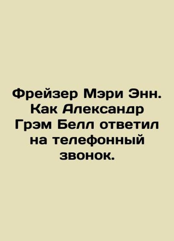 Frazer Mary Ann: How Alexander Graham Bell answered the phone. In Russian /Freyzer Meri Enn. Kak Aleksandr Grem Bell otvetil na telefonnyy zvonok. Series: Pythagoras Pants. Illustrator: Natalia Anthokolskaya, Moscow, 32 p. We have thousands of titles and often several copies of each title may be available. Please feel free to contact us for a detailed description of the copies available. SKUalbe7328afa7541d8f2.