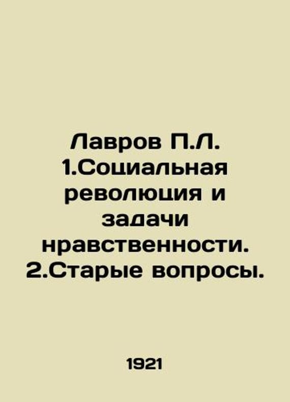 Lavrov L. 1. The Social Revolution and Problems of Morality. 2. Old Questions. In Russian /Lavrov L. 1.Sotsialnaya revolyutsiya i zadachi nravstvennosti. 2.Starye voprosy. With a note by Vityazev. Petrograd. Kolos Book Publishing House. 1921. We have thousands of titles and often several copies of each title may be available. Please feel free to contact us for a detailed description of the copies available. SKUalbe796a300f5530bd3.