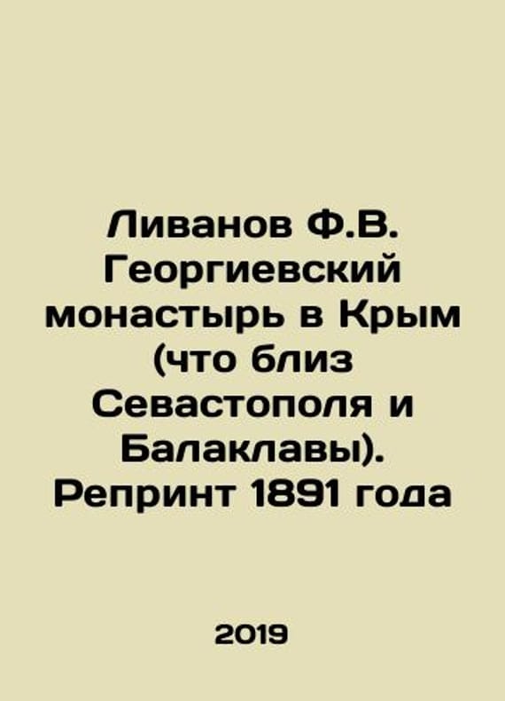 F.V. Livanov Monastery in Crimea (near Sevastopol and Balaklava). Reprint of 1891 In Russian /Livanov F.V. Georgievskiy monastyr v Krym (chto bliz Sevastopolya i Balaklavy). Reprint 1891 goda Sevastopol Salta, Historical Club Sevastopol Tauric, 2009. We have thousands of titles and often several copies of each title may be available. Please feel free to contact us for a detailed description of the copies available. SKUalbe7b805bb5398f61a.