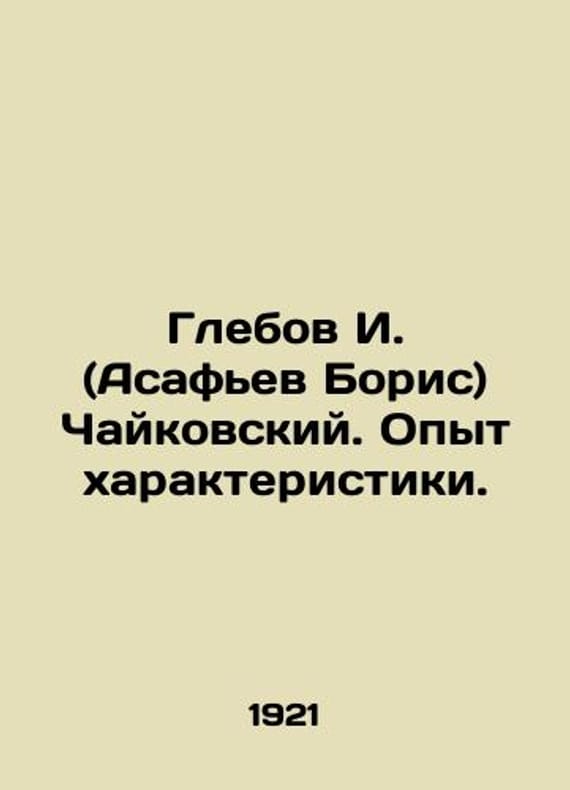 Glebov I. (Asafiev Boris) Tchaikovsky. Experience of characterization. In Russian /Glebov I. (Asafev Boris) Chaykovskiy. Opyt kharakteristiki. Series: Experience of Characteristics. Pg. Svetozar. 1921. We have thousands of titles and often several copies of each title may be available. Please feel free to contact us for a detailed description of the copies available. SKUalbe80a9a2641ef9b6c.