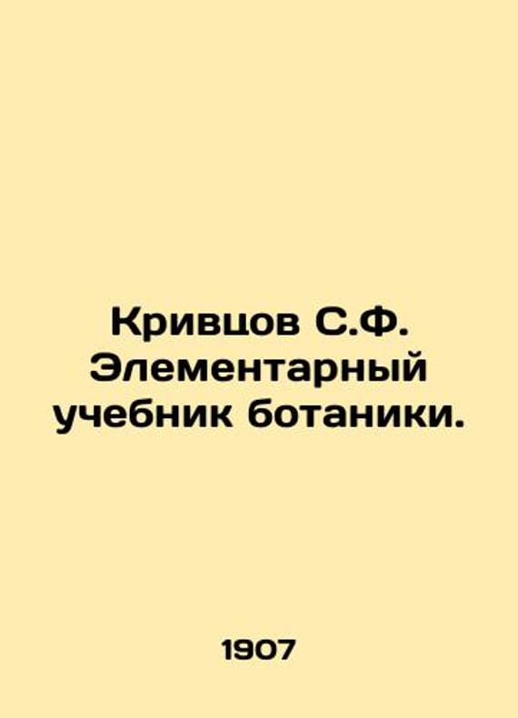 Krivtsov S.F. Elementary textbook of botany. In Russian /Krivtsov S.F. Elementarnyy uchebnik botaniki. St. Petersburg 1907. We have thousands of titles and often several copies of each title may be available. Please feel free to contact us for a detailed description of the copies available. The delivery of this book might be delayed beyond the usual timeframe due to extended processing and preparation before shipment, and faster shipping opSKUalbe838829354c30c79