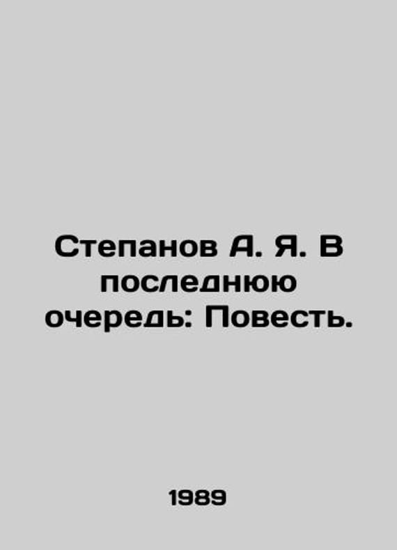 Stepanov A. Ya. Last but not least: The Tale. In Russian /Stepanov A. Ya. V poslednyuyu ochered: Povest. Library Duduk M. Moscow Worker 1989. 94 p. We have thousands of titles and often several copies of each title may be available. Please feel free to contact us for a detailed description of the copies available. SKUalbe8747959cb3e264c.