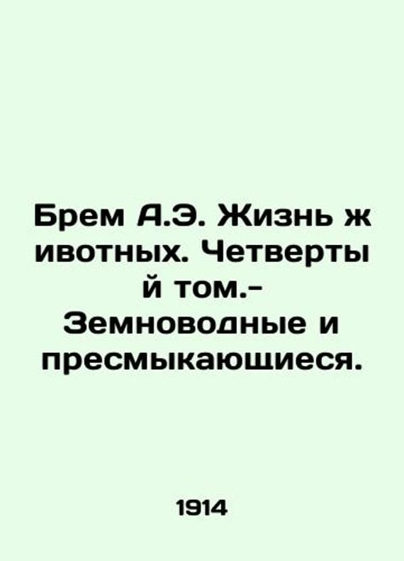 Brem A.E. Animal Life. Volume 4 - Amphibians and Reptiles. In Russian /Brem A.E. Zhizn zhivotnykh.Chetvertyy tom.- Zemnovodnye i presmykayushchiesya. About 2000 pictures in the text, more than 500 color tables carved on copper and wood, 13 maps. St. Petersburg Russian Book Company. 1914. XVII p. and 718 p. We have thousands of titles and often several copies of each title may be available. Please feel free to contact us for a detailed description of the copies available. SKUalbe896158f0f288f7a.