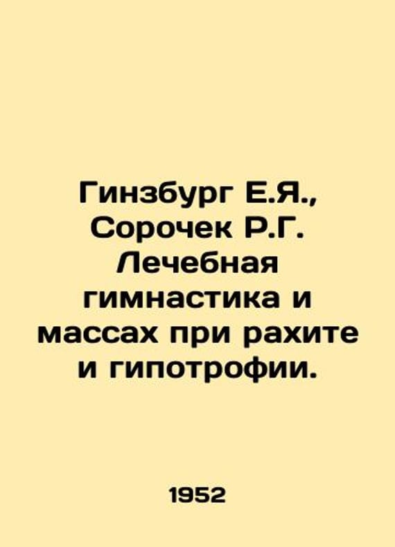 Ginsburg E.Ya., Sorochek R.G. Curative gymnastics and masses in cases of rickets and malnutrition. In Russian /Ginzburg E.Ya., Sorochek R.G. Lechebnaya gimnastika i massakh pri rakhite i gipotrofii. Photo illustrations and drawings (72 pcs.). Moscow Regional Clinic of Physical Methods of Treatment. 1952. We have thousands of titles and often several copies of each title may be available. Please feel free to contact us for a detailed description of the copies available. SKUalbe8a6d9050de82858.