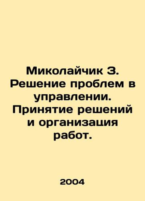 Mikolajczyk Z. Solving problems in management. Decision-making and organization of work. In Russian /Mikolaychik Z. Reshenie problem v upravlenii. Prinyatie resheniy i organizatsiya rabot. Kharkiv. Humanitarian Center. 2004. 472 pp. We have thousands of titles and often several copies of each title may be available. Please feel free to contact us for a detailed description of the copies available. SKUalbe8a8099be68c602b.