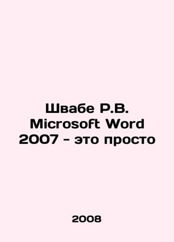 Schwabe R.W. Microsoft Word 2007 is simple In Russian /Shvabe R.V. Microsoft Word 2007 - eto prosto Pen with him. M 2008. We have thousands of titles and often several copies of each title may be available. Please feel free to contact us for a detailed description of the copies available. SKUalbe8b9d4d3e8d7ea3d.