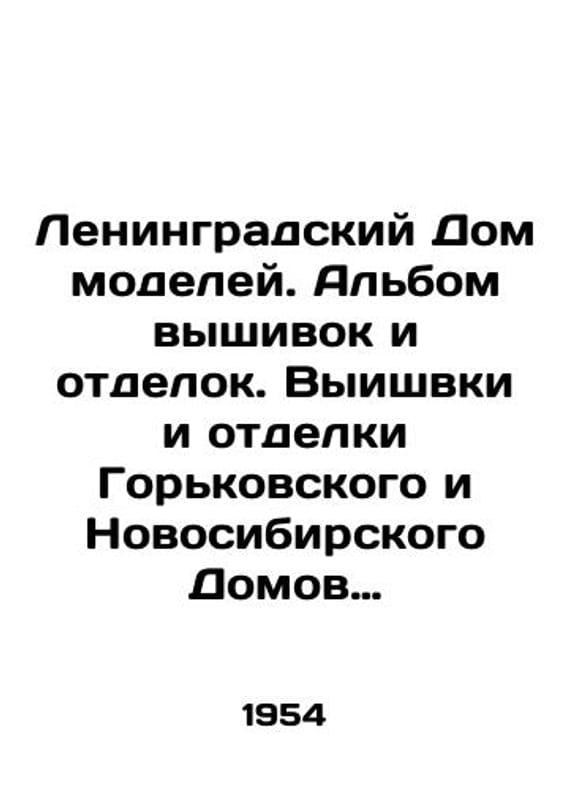 Leningrad House of Models. An album of embroideries and finishes In Russian /Leningradskiy Dom modeley. Albom vyshivok i otdelok. Vyishvki i otdelki Gorkovskogo i Novosibirskogo Domov modeley. Lenizdat. 1954. We have thousands of titles and often several copies of each title may be available. Please feel free to contact us for a detailed description of the copies available. SKUalbe8f86f924ef2bdca.