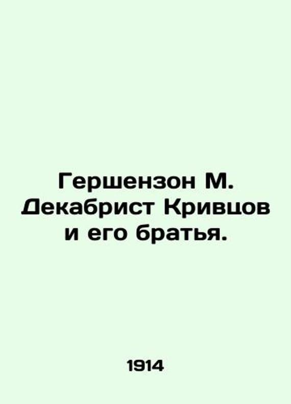 Gershenzon M. Decembrist Krivtsov and his brothers. In Russian /Gershenzon M. Dekabrist Krivtsov i ego bratya. Moscow 1914. 2, 300s. We have thousands of titles and often several copies of each title may be available. Please feel free to contact us for a detailed description of the copies available. SKUalbe8fb2ece6388b519.