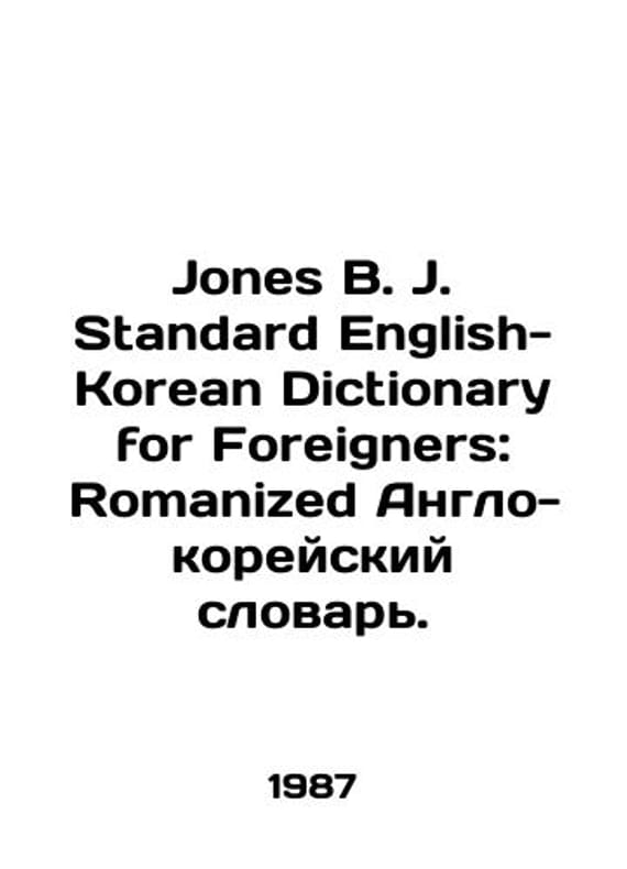 Jones B. J. Standard English-Korean Dictionary for Foreigners: Romanized English-Korean Dictionary. In Russian /Jones B. J. Standard English-Korean Dictionary for Foreigners: Romanized Anglo-koreyskiy slovar. Hollywood 1987. 386c. We have thousands of titles and often several copies of each title may be available. Please feel free to contact us for a detailed description of the copies available. SKUalbe91d96d7866bf651.