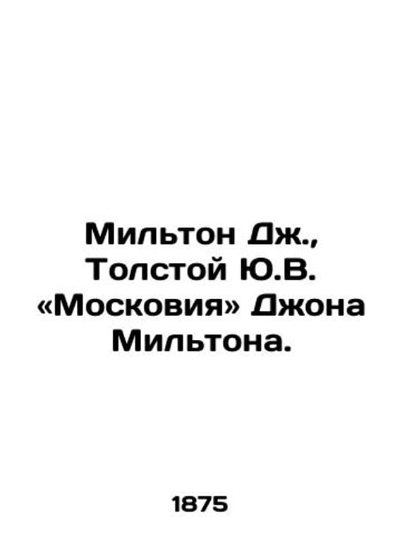 Milton J., Tolstoy Y.V., Moscow, John Milton. In Russian /Milton Dzh., Tolstoy Yu.V. «Moskoviya» Dzhona Miltona. With an article and notes by Yuri Vas. Tolstoy. Edition of the Imperial Society of History and Antiquities of Russia at Moscow University: University Printing House 1875. 2, 24, 2, II, 83, 3c. We have thousands of titles and often several copies of each title may be available. Please feel free to contact us for a detailed description of the copies available. SKUalbe957df931485f6b5.