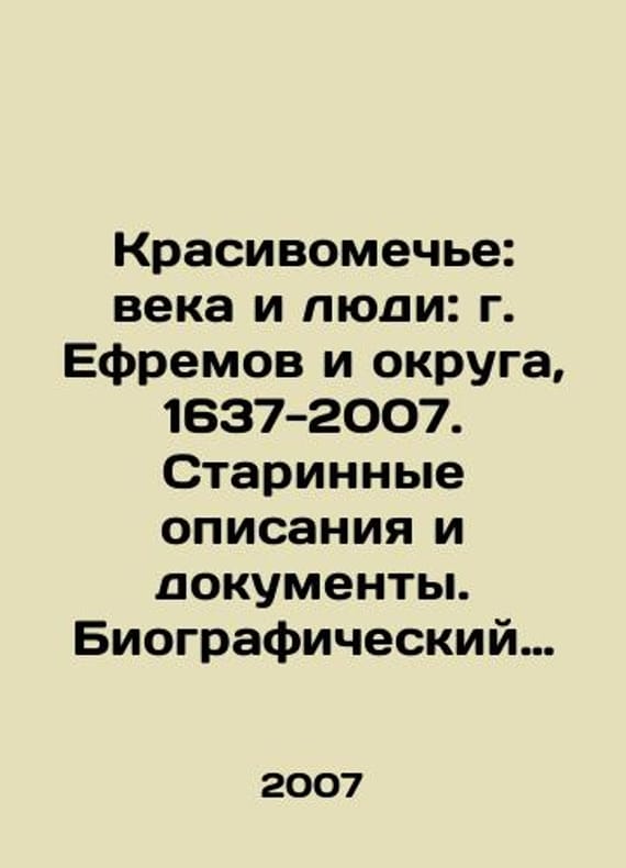 Beautiful Dreaming: Centuries and People: Efremov and District, 1637-2007. Ancient descriptions and documents. Biographical reference book. In Russian /Krasivomeche: veka i lyudi: g. Efremov i okruga, 1637-2007. Starinnye opisaniya i dokumenty. Biograficheskiy spravochnik. Tula Neography 2007. 416 p. We have thousands of titles and often several copies of each title may be available. Please feel free to contact us for a detailed description of the copies available. SKUalbe978b466fd4b7775.