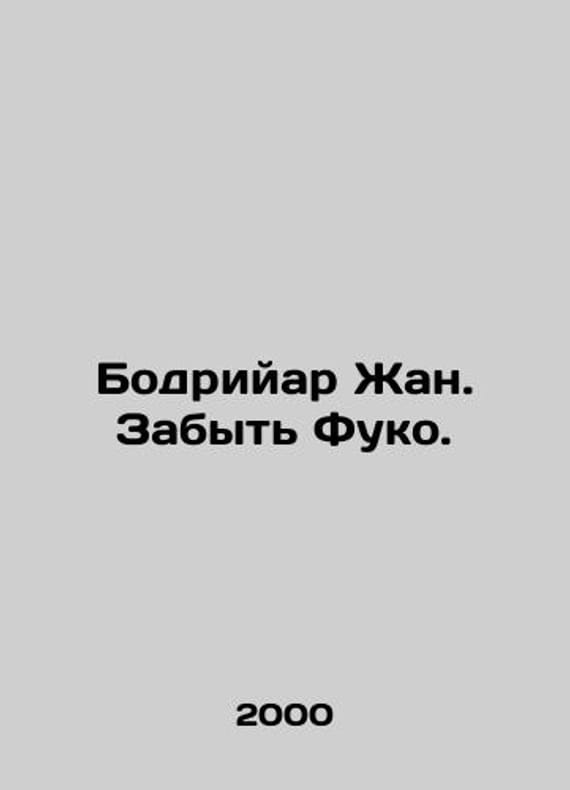 Baudrillard Jean. Forget Foucault. In Russian /Bodriyar Zhan. Zabyt Fuko. St. Petersburg Vladimir Dal 2000, 92s. We have thousands of titles and often several copies of each title may be available. Please feel free to contact us for a detailed description of the copies available. SKUalbeb4f0a6b8940bfe7.