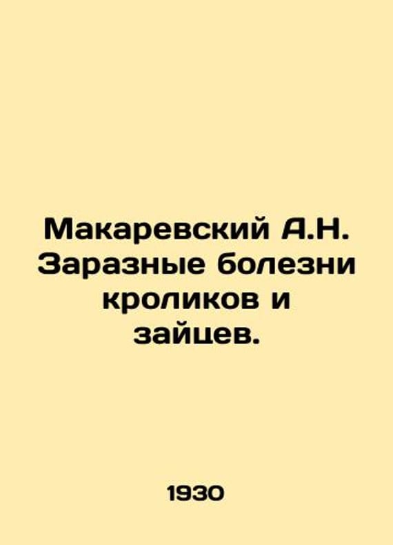 Makarevsky A.N. Communicable diseases of rabbits and rabbits. In Russian /Makarevskiy A.N. Zaraznye bolezni krolikov i zaytsev. Microbial and parasitic. M. Publishing House of the Peoples Commissariat of the USSR and the RSFSR. 1930. 112 p. We have thousands of titles and often several copies of each title may be available. Please feel free to contact us for a detailed description of the copies available. SKUalbe9b748e193ffa23c.