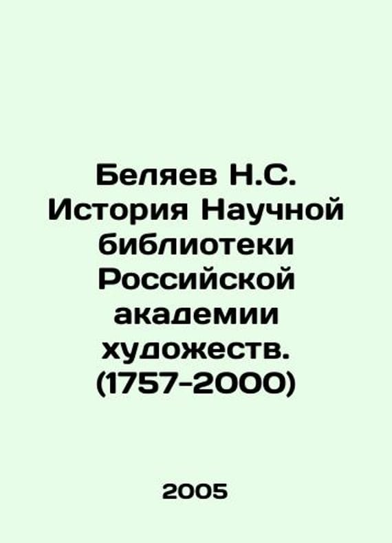 N.S. Belyaev History of the Scientific Library of the Russian Academy of Arts. (1757-2000) In Russian (ask us if in doubt)/Belyaev N.S. Istoriya Nauchnoy biblioteki Rossiyskoy akademii khudozhestv. (1757-2000). St. Petersburg. Lema. 2005. 182 p. SKUalbe9ce348e92e8fb91.