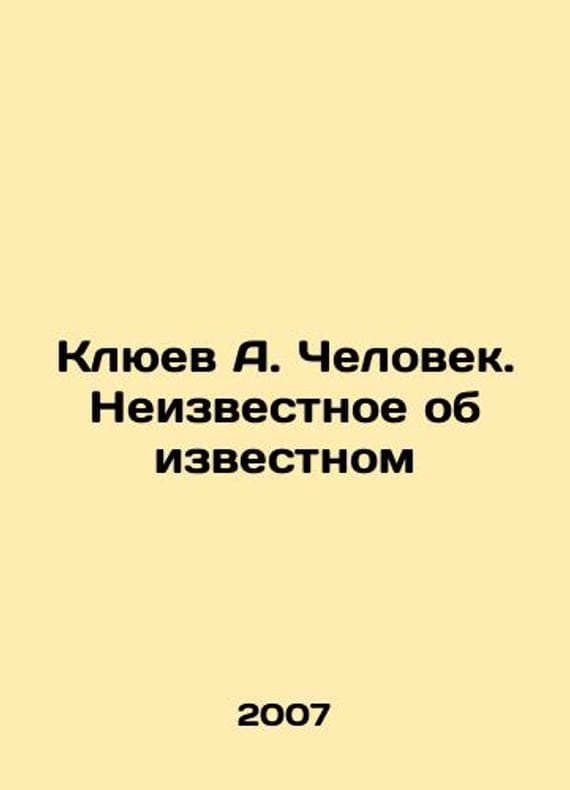 Klyuev A. The Man. Unknown about the Known In Russian /Klyuev A. Chelovek. Neizvestnoe ob izvestnom M. Pilgrim 2007. This is a book of conversations about man and his evolutionary destiny. In it you will discover much new, hitherto unknown, and indeed be convinced that the greatest ignorance of modern science is mans ignorance. Only by knowing yourself and your true destiny can man overcome the deepest evolutionary crisis in which modern mankind finds itself. We have thousands of titles and often several copies of each title may be available. Please feel free to contact us for a detailed description of the copies available. SKUalbe9dc8903ead5e3a9.