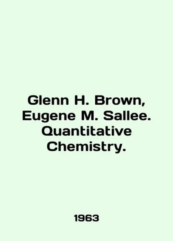 Glenn H. Brown, Eugene M. Sallee. Quantitative Chemistry. In English /Glenn H. Brown, Eugene M. Sallee. Quantitative Chemistry. NY. Prentice Hall. 1963. 662 We have thousands of titles and often several copies of each title may be available. Please feel free to contact us for a detailed description of the copies available. SKUalbe9e2f2954a26f5bd.