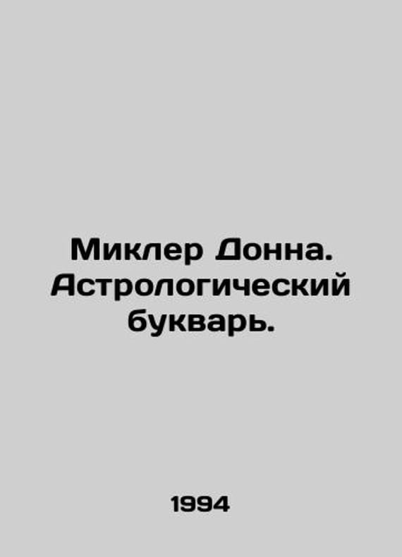 Mickler Donna. An astrological booklet. In Russian /Mikler Donna. Astrologicheskiy bukvar. Translated from English by T. Konyukhova. General editorial and preface by F. Velichko. M. Urania 1994. We have thousands of titles and often several copies of each title may be available. Please feel free to contact us for a detailed description of the copies available. SKUalbe9f0f3575ba0ef8f.