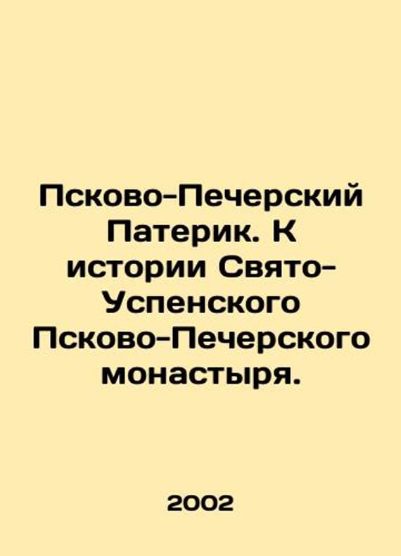 Paterik of Pskov-Pechersk. Towards the History of Holy Dormition Monastery of Pskov-Pechersk. In Russian /Pskovo-Pecherskiy Paterik. K istorii Svyato-Uspenskogo Pskovo-Pecherskogo monastyrya.With the blessing of His Eminence Evsebius, Archbishop of Pskov and Velikie Luki, Holy Dormition Monastery of Pskov-Pechersk Archimandrite. Pechora. Editions of Holy Dormition Monastery of Pskov-Pechersk. 2002.We have thousands of titles and often several copies of each title may be available. Please feel free to contact us for a detailed description of the copies available. SKUalbe9fd860d088ae5cd.