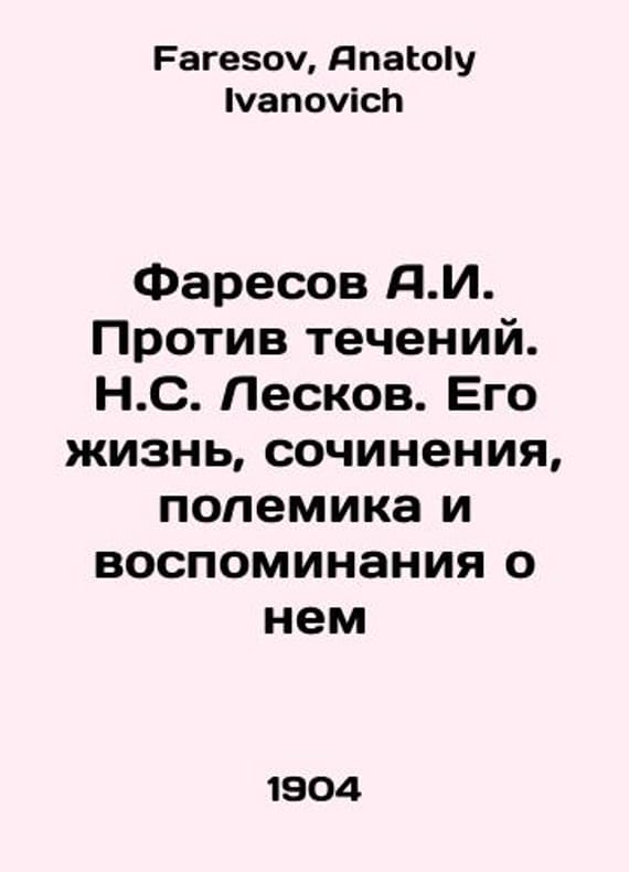 Faresov A.I. Against the Currents. N.S. Leskov. His Life, Works, Polemics and Memories About Him In Russian /Faresov A.I. Protiv techeniy. N.S. Leskov. Ego zhizn, sochineniya, polemika i vospominaniya o nem With a rare portrait of St. Petersburg type. M.Merkushev 1904. 412 and 1 portrait. We have thousands of titles and often several copies of each title may be available. Please feel free to contact us for a detailed description of the copies available. SKUalbea44ebf97e13f94b.