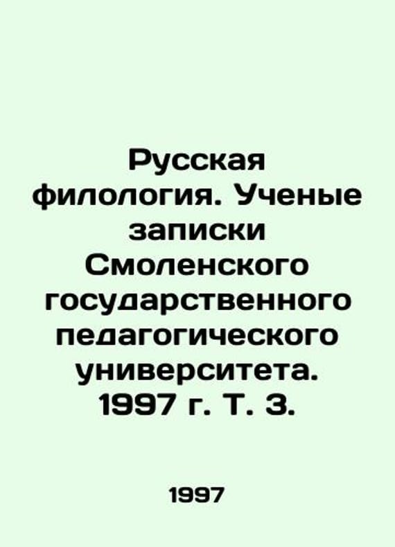 Russian Philology. Academic Memoranda of Smolensk State Pedagogical University. 1997, Vol. 3. In Russian /Russkaya filologiya. Uchenye zapiski Smolenskogo gosudarstvennogo pedagogicheskogo universiteta. 1997 g.T. 3.Smolensk SPPU 1997.We have thousands of titles and often several copies of each title may be available. Please feel free to contact us for a detailed description of the copies available. SKUalbea84752af980f099.