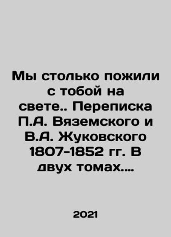 We have lived so much with you in the world.. Correspondence of P.A. Vyazemsky and V.A. Zhukovsky 1807-1852. In two volumes. Volume I 1807-1825 Volume II 1826-1852. In Russian /My stolko pozhili s toboy na svete. Perepiska P.A. Vyazemskogo i V.A. Zhukovskogo 1807-1852 gg. V dvukh tomakh. Tom I. 1807-1825 gg. Tom II. 1826-1852 gg. Introductory article, drafting, preparation of text, comments: V.S. Kiselev, O.B. Lebedeva, S.I. Panova. Executive Editor V.S. Kiselev. Tomsk. Tomsk University Publishing House. 2021. 624 p. We have thousands of titles and often several copies of each title may be available. Please feel free to contact us for a detailed description of the copies available. SKUalbeacf61f25dc25e09.