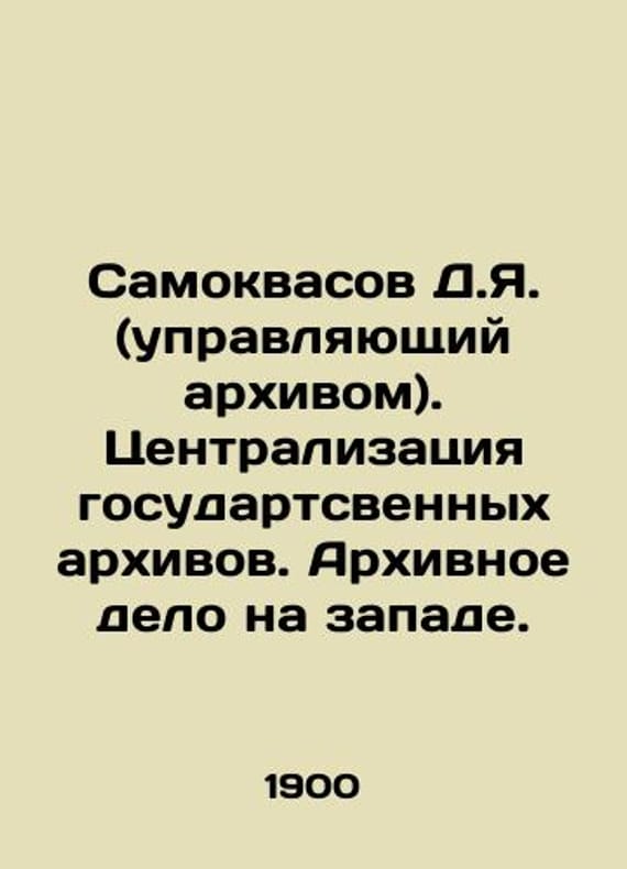 Samokvasov D.Ya. (archives manager). Centralization of state archives. Archiving in the West. In Russian (ask us if in doubt)/Samokvasov D.Ya. (upravlyayushchiy arkhivom). Tsentralizatsiya gosudartsvennykh arkhivov. Arkhivnoe delo na zapade.M. Prostakov Typolithography 1900. The book contains a review of the state archives and archival legislation of Austria-Hungary Bavaria Weimar Great Britain the Netherlands Denmark Spain Norway Prussia Saxony Switzerland and Sweden. We have thousands of titles and often several copies of each title may be available. Please feel free to contact us for a detailed description of the copies available. SKUalbeb0806d01ea26da8