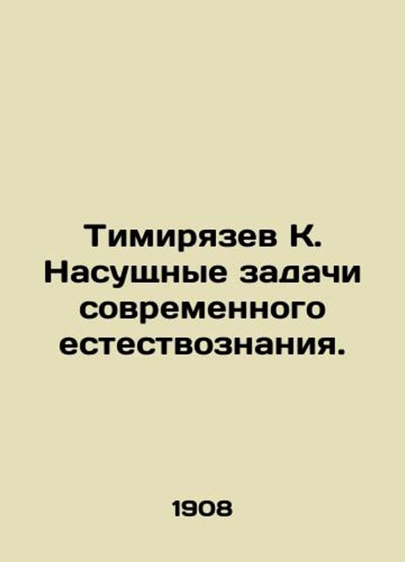 Timiryazev K. Urgent tasks of modern natural science. In Russian /Timiryazev K. Nasushchnye zadachi sovremennogo estestvoznaniya. Public Speeches by K. Timiryazev. Third edition, supplemented by V.N. Marakueva. M. Tipo-lithogr. T-va I. N. Kushnerev and K. 1908. We have thousands of titles and often several copies of each title may be available. Please feel free to contact us for a detailed description of the copies available. SKUalbeb08ade8460428e8.