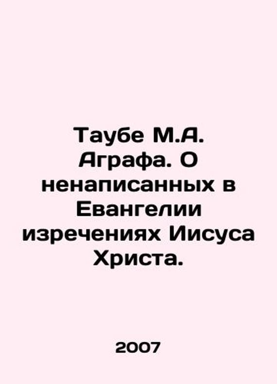Taube M.A. Agraf. On the unwritten words of Jesus Christ in the Gospel. In Russian /Taube M.A. Agrafa. O nenapisannykh v Evangelii izrecheniyakh Iisusa Khrista. M. Krutitskoye dvor. 2007. 216 p. We have thousands of titles and often several copies of each title may be available. Please feel free to contact us for a detailed description of the copies available. SKUalbeb0a4bcb02c39479.