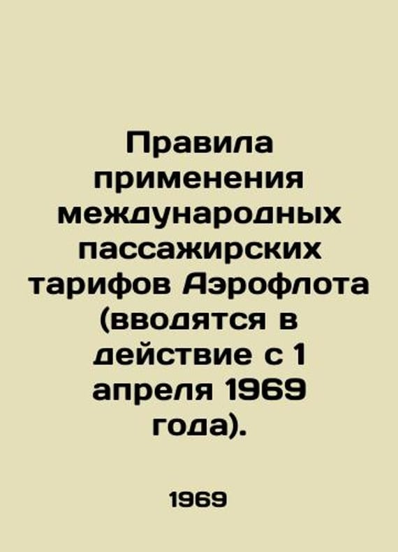 Rules for the Application of Aeroflot International Passenger Tariffs (in force since 1 April 1969). In Russian /Pravila primeneniya mezhdunarodnykh passazhirskikh tarifov Aeroflota (vvodyatsya v deystvie s 1 aprelya 1969 goda). USSR Ministry of Civil Aviation. M 1969. We have thousands of titles and often several copies of each title may be available. Please feel free to contact us for a detailed description of the copies available. SKUalbeb4b7ea975c28284.