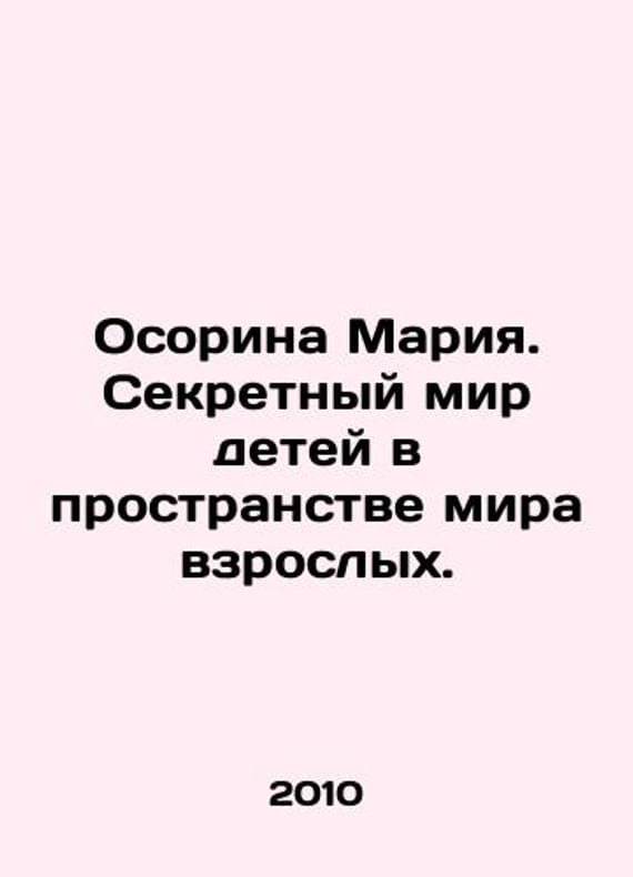 Osorina Maria. The Secret World of Children in the World of Adults. In Russian /Osorina Mariya. Sekretnyy mir detey v prostranstve mira vzroslykh. Series: Myself a Psychologist. St. Petersburg, 2010. We have thousands of titles and often several copies of each title may be available. Please feel free to contact us for a detailed description of the copies available. SKUalbeb4fd55f24d79a06.