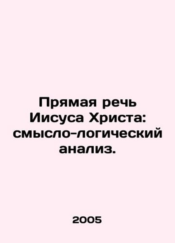 Jesus Christs Direct Speech: A Meaning-Logical Analysis. In Russian /Pryamaya rech Iisusa Khrista: smyslo-logicheskiy analiz. St. Petersburg Aleteiya 2005. 330s. We have thousands of titles and often several copies of each title may be available. Please feel free to contact us for a detailed description of the copies available. SKUalbeb50c17d44a45ca1.
