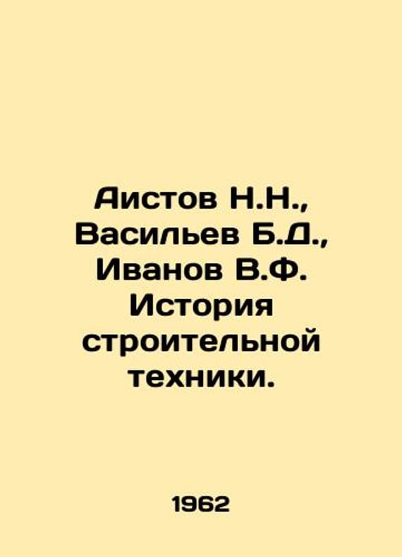 Storyov N.N., Vasiliev B.D., Ivanov V.F. History of construction equipment. In Russian /Aistov N.N., Vasilev B.D., Ivanov V.F. Istoriya stroitelnoy tekhniki. Editor-in-Chief of Science and Technology of the RSFSR, Doctor of Engineering Sciences, Professor V.F. Ivanov. L.-M. State Publishing House of Literature on Construction and Architecture and Building Materials. 1962. 560 p. We have thousands of titles and often several copies of each title may be available. Please feel free to contact us for a detailed description of the copies available. SKUalbeb537a68b8b1c13d.