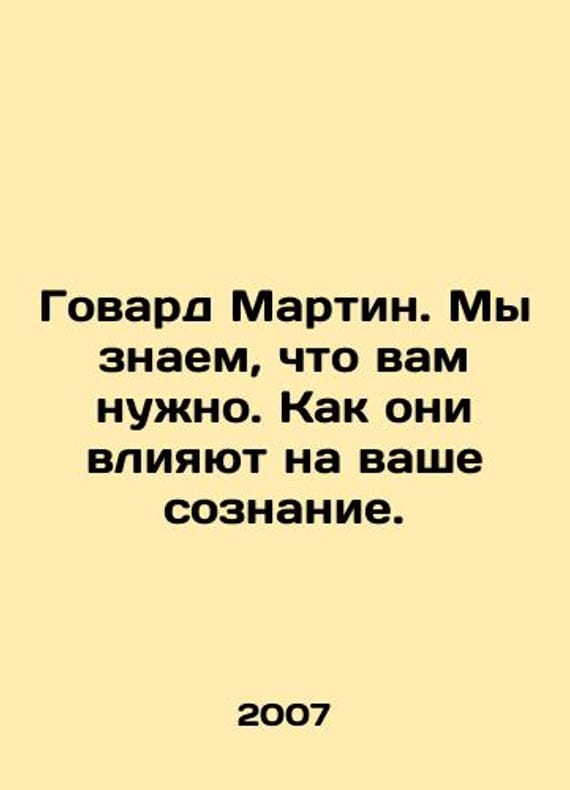 Howard Martin. We know what you need. How they affect your consciousness. In Russian /Govard Martin. My znaem, chto vam nuzhno. Kak oni vliyayut na vashe soznanie. Yekaterinburg. Ultra. Culture. 2007. 192p. We have thousands of titles and often several copies of each title may be available. Please feel free to contact us for a detailed description of the copies available. SKUalbeb584e1ba9f70f5e.
