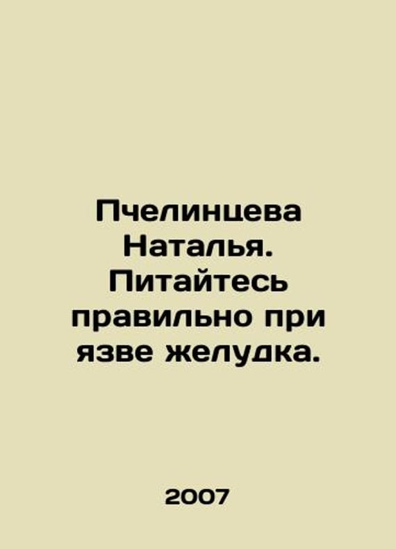 Natalia Bechelintseva. Eat properly for stomach ulcers. In Russian /Pchelintseva Natalya. Pitaytes pravilno pri yazve zheludka. Exmo 2007. We have thousands of titles and often several copies of each title may be available. Please feel free to contact us for a detailed description of the copies available. SKUalbeb5cf9e68f68c1c1.