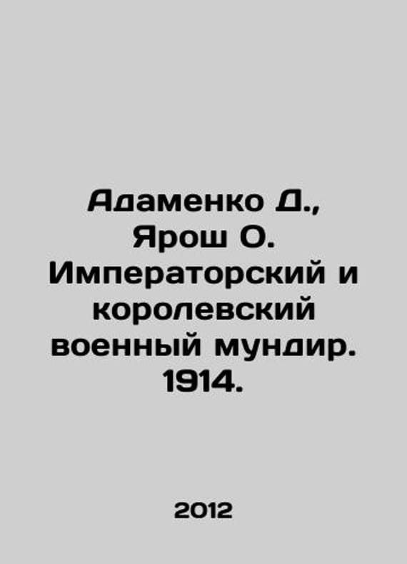 Adamenko D., Yarosh O. Imperial and Royal Military Uniforms. 1914. In Russian /Adamenko D., Yarosh O. Imperatorskiy i korolevskiy voennyy mundir. 1914. Kyiv 2012. 160p.. We have thousands of titles and often several copies of each title may be available. Please feel free to contact us for a detailed description of the copies available. SKUalbeb7c54a264689adb.