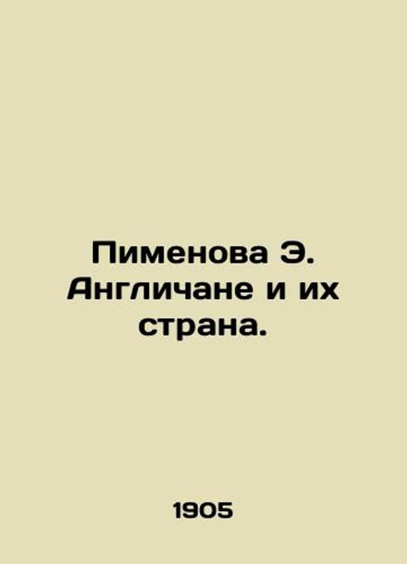 Pimenova E. The English and their country. In Russian /Pimenova E. Anglichane i ikh strana. With drawings. St. Petersburg Public Benefit 1905. 143 p. We have thousands of titles and often several copies of each title may be available. Please feel free to contact us for a detailed description of the copies available. SKUalbeb8381ab04f8d6b5.