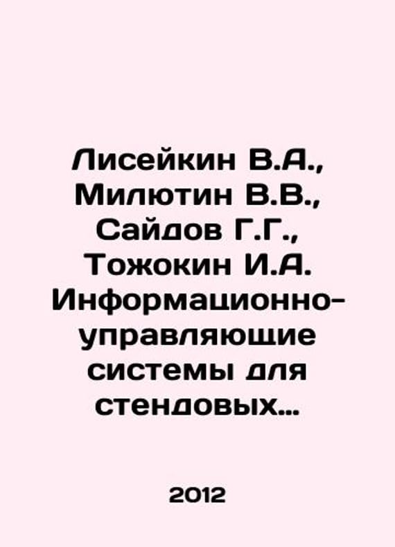 Liseikin V.A., Milyutin V.V., Saidov G.G., Tozhokin I.A. Information and control systems for bench tests of liquid propellant and propulsion units. In Russian /Liseykin V.A., Milyutin V.V., Saydov G.G., Tozhokin I.A. Informatsionno-upravlyayushchie sistemy dlya stendovykh ispytaniy ZhRD i dvigatelnykh ustanovok. M. Mashinostroenie 2012. 406s. We have thousands of titles and often several copies of each title may be available. Please feel free to contact us for a detailed description of the copies available. SKUalbeb861b4faf2c2a16.